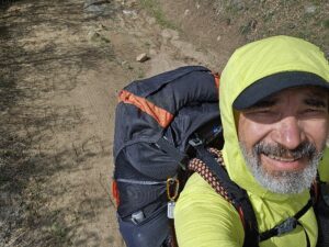 La reprise du matin est tout de suite en montée mais il faut dire qu’ils vont faire 1300 m de dénivelé dans la journée. De petits nuages s’accrochent aux sommets et rapidement ils vont passer dans l’ombre et du coup il fera plus frais. Ce matin en démarrant la température était de 6°C.